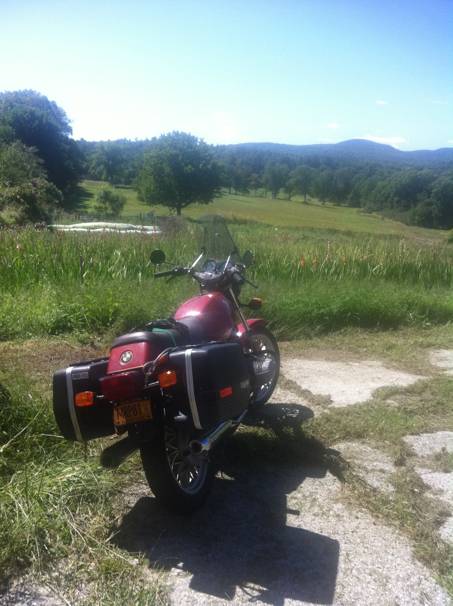 Working on the bike at  Dooryard Farm  in Camden, Maine.