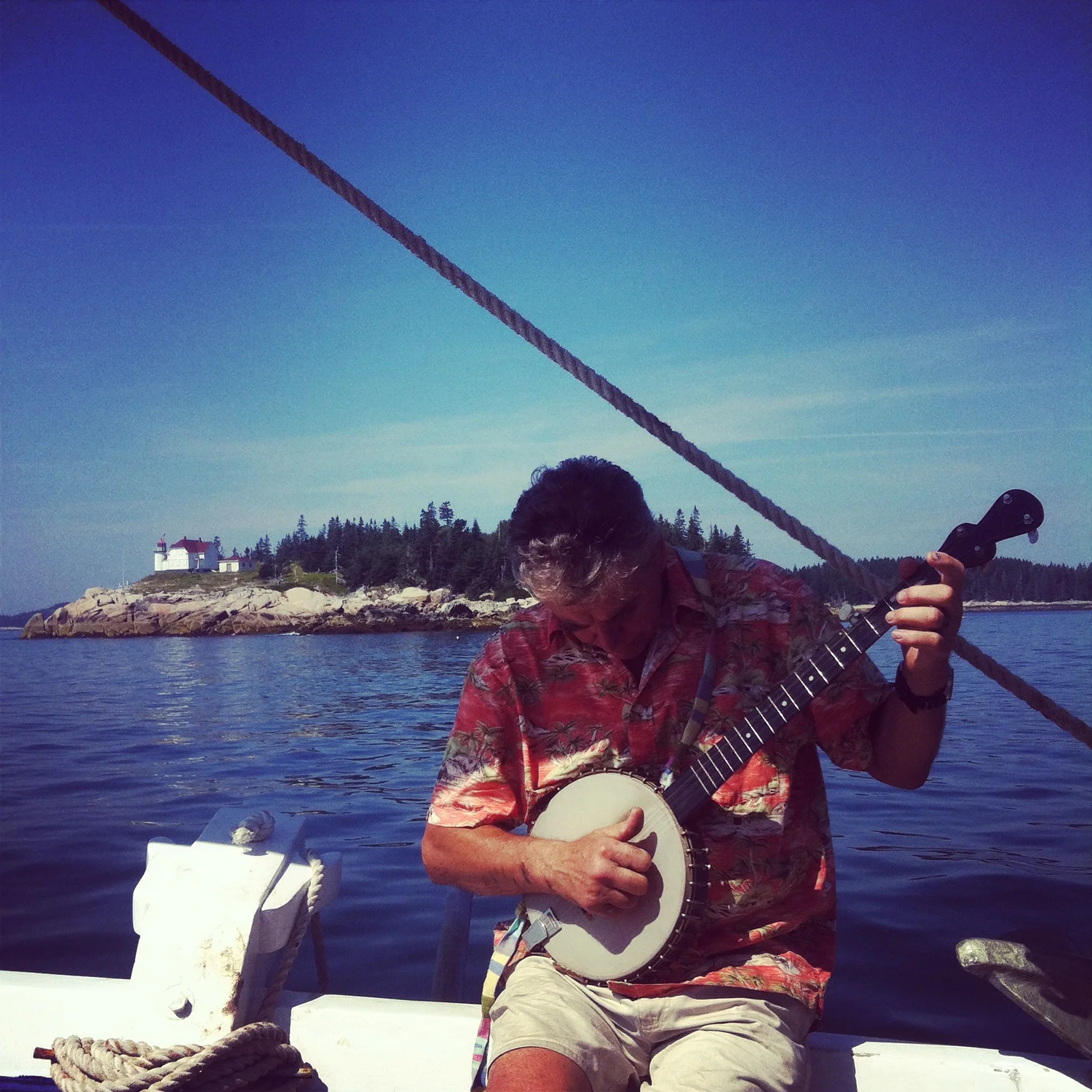 Cook and moto mentor, Greg Dorr, picking the banjo to the rhythm of the sea.